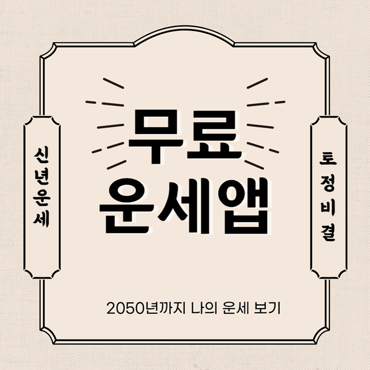 매년 살펴봐야 할 신년운세, 토정비결 볼 수 있는 괜찮은 무료 운세앱을 소개해드립니다. 이제 곧 다가올 2023년 나의 미래를 미리 엿볼 수 있는 멋진 앱이며 2050년까지 자료를 볼 수 있습니다. 건당 결제도 없고 질적으로, 양적으로 퀄리티가 상당히 좋습니다.